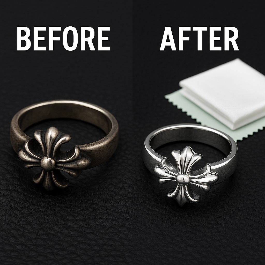 つまり、黒ずみは劣化ではなく「変化」。磨き直すことで再び輝きを取り戻せるのも、本物のシルバーならではの特徴です。