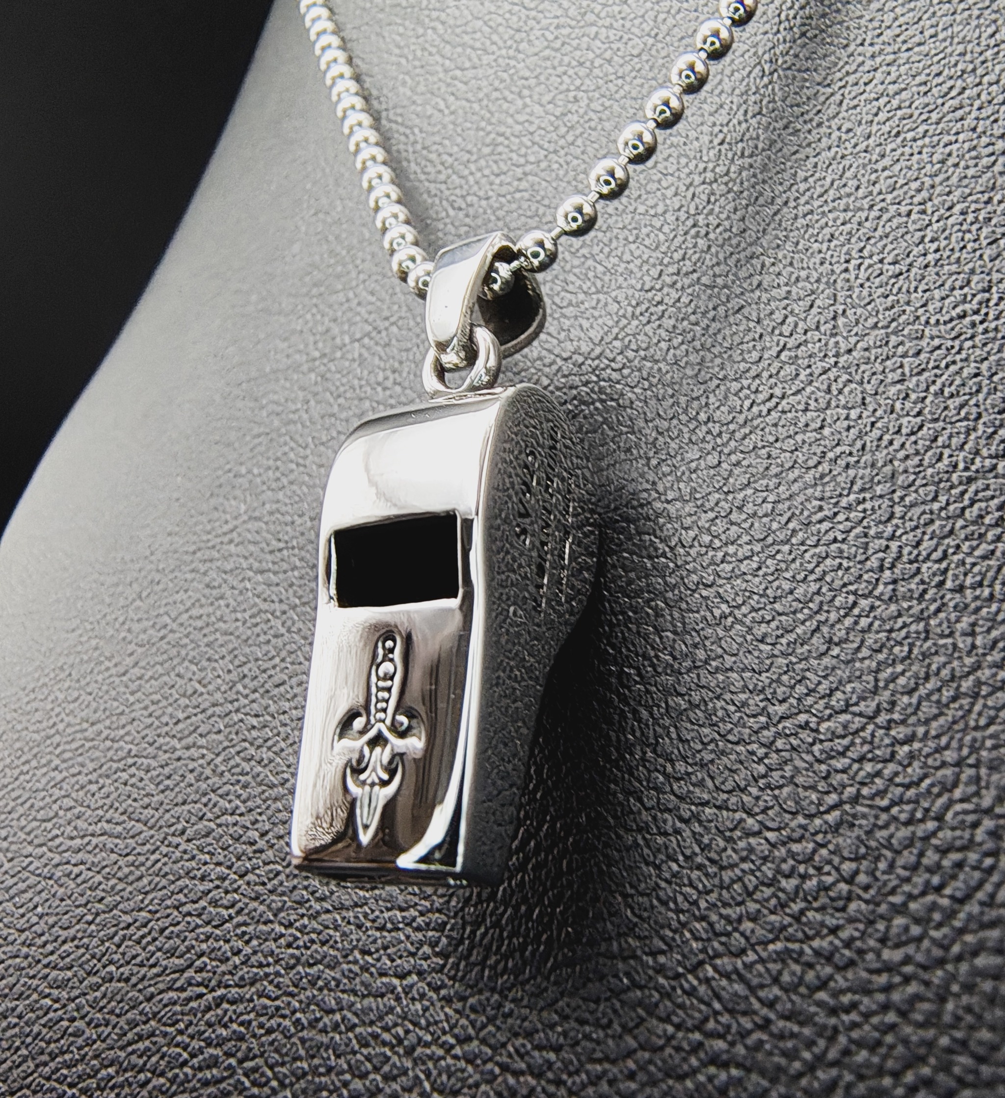 ホイッスルは“状況を切り替える合図”。無骨なフォルムに刻印を配し、ストリートやミリタリーに好相性な“機能美”をアクセサリーへ。