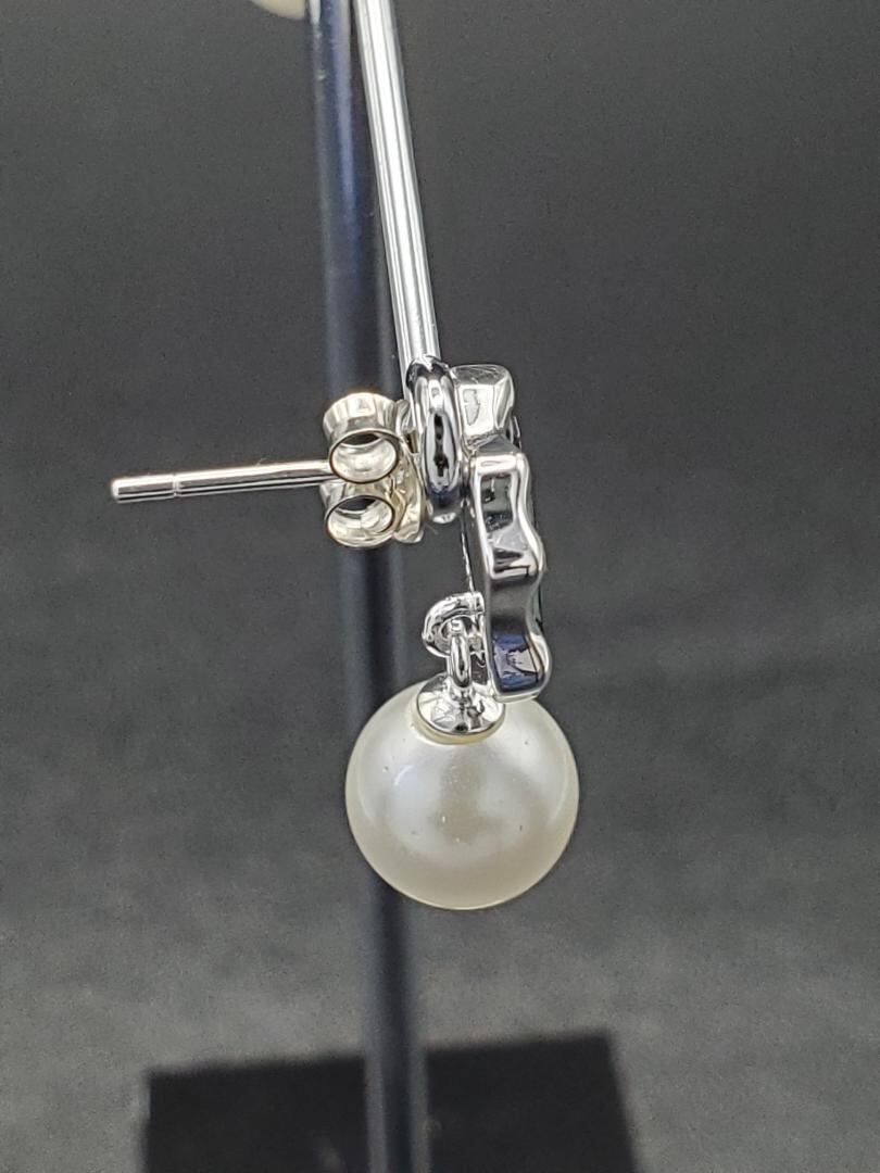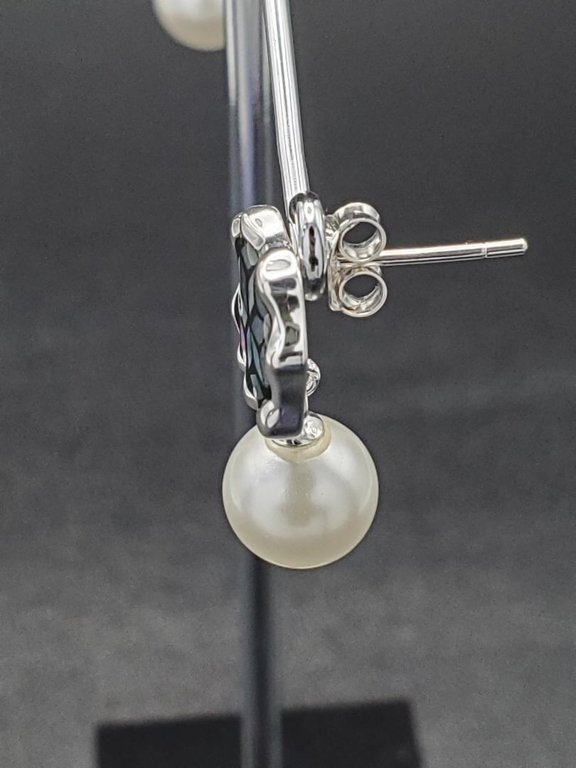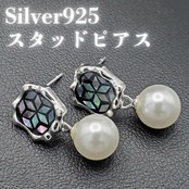 シルバー925 ステンドグラス風 パール付きスタッドピアス 両耳セット 新品