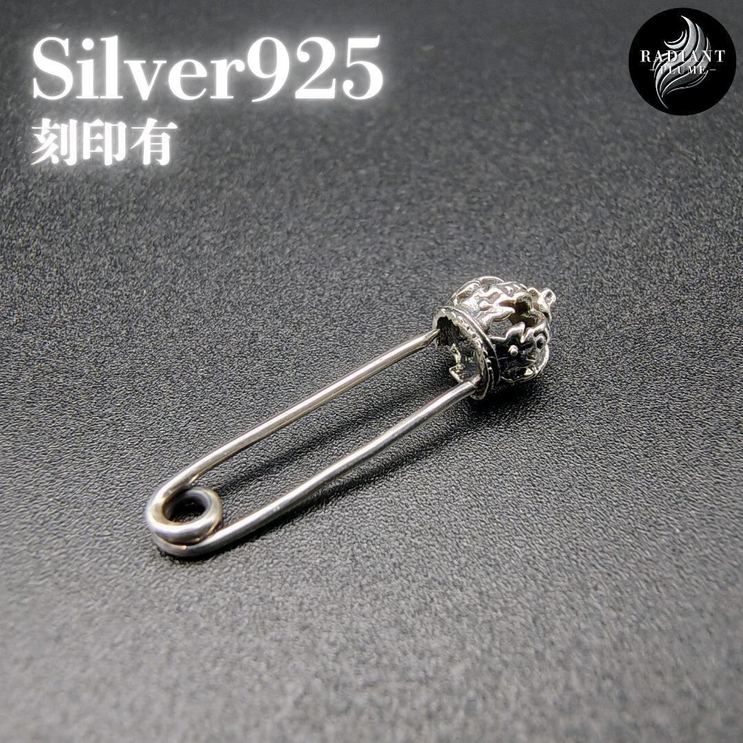シルバー925 安全ピン 王冠 ピアス ネックレス 新品