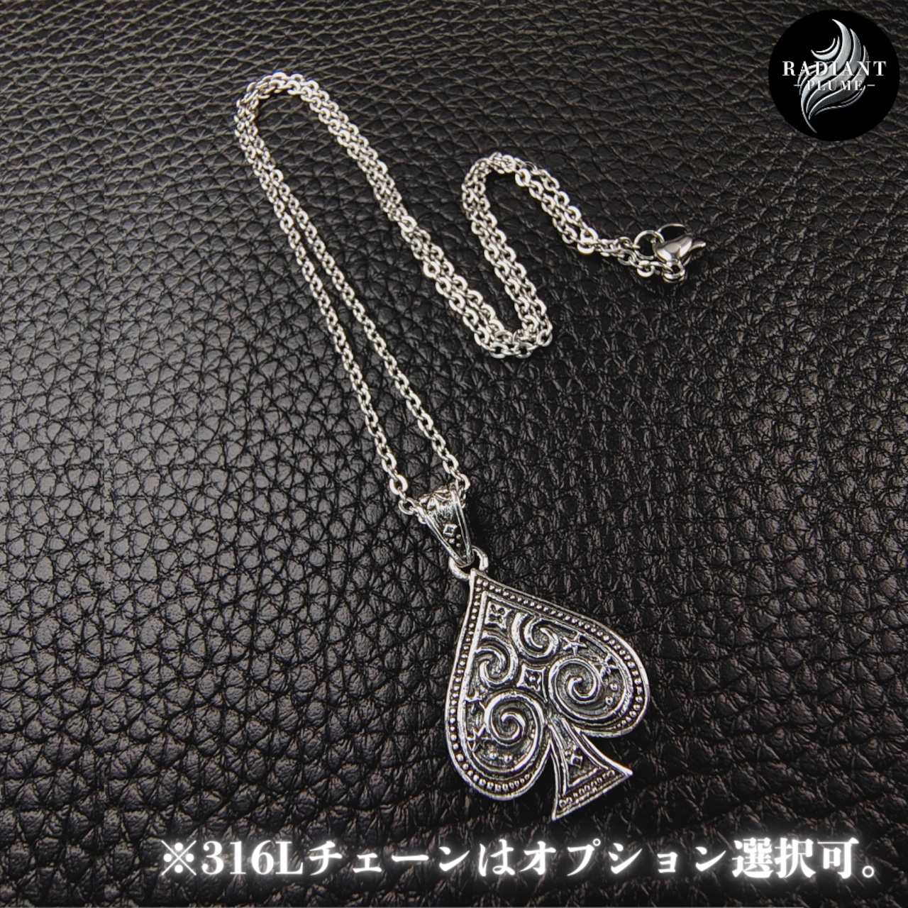 スペードをモチーフに、中世タロットやトランプの象徴性を継承したオリジナルペンダント。
