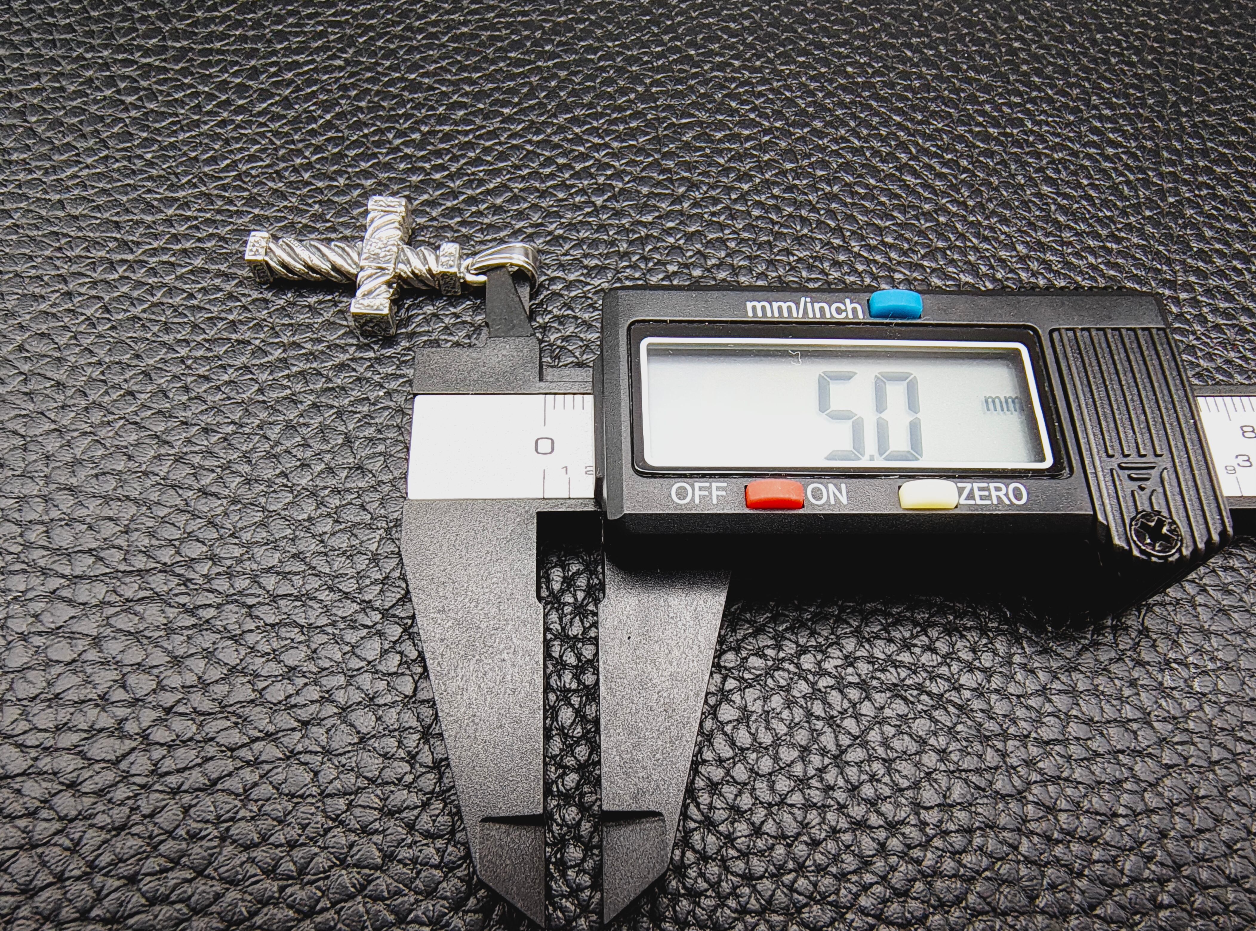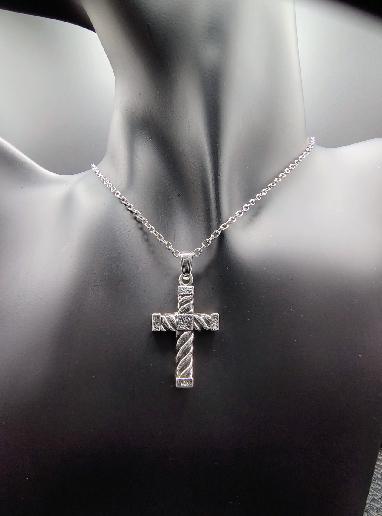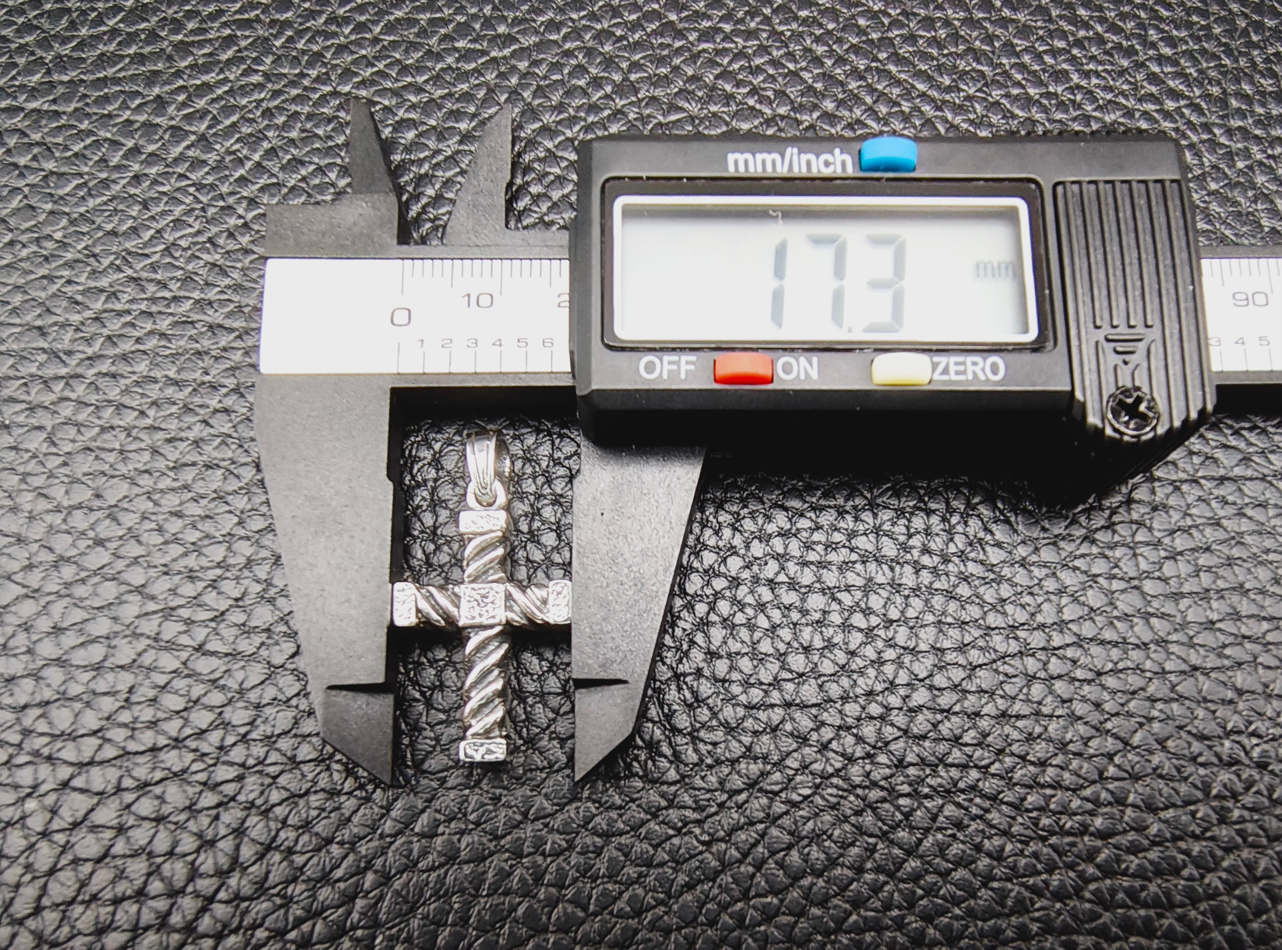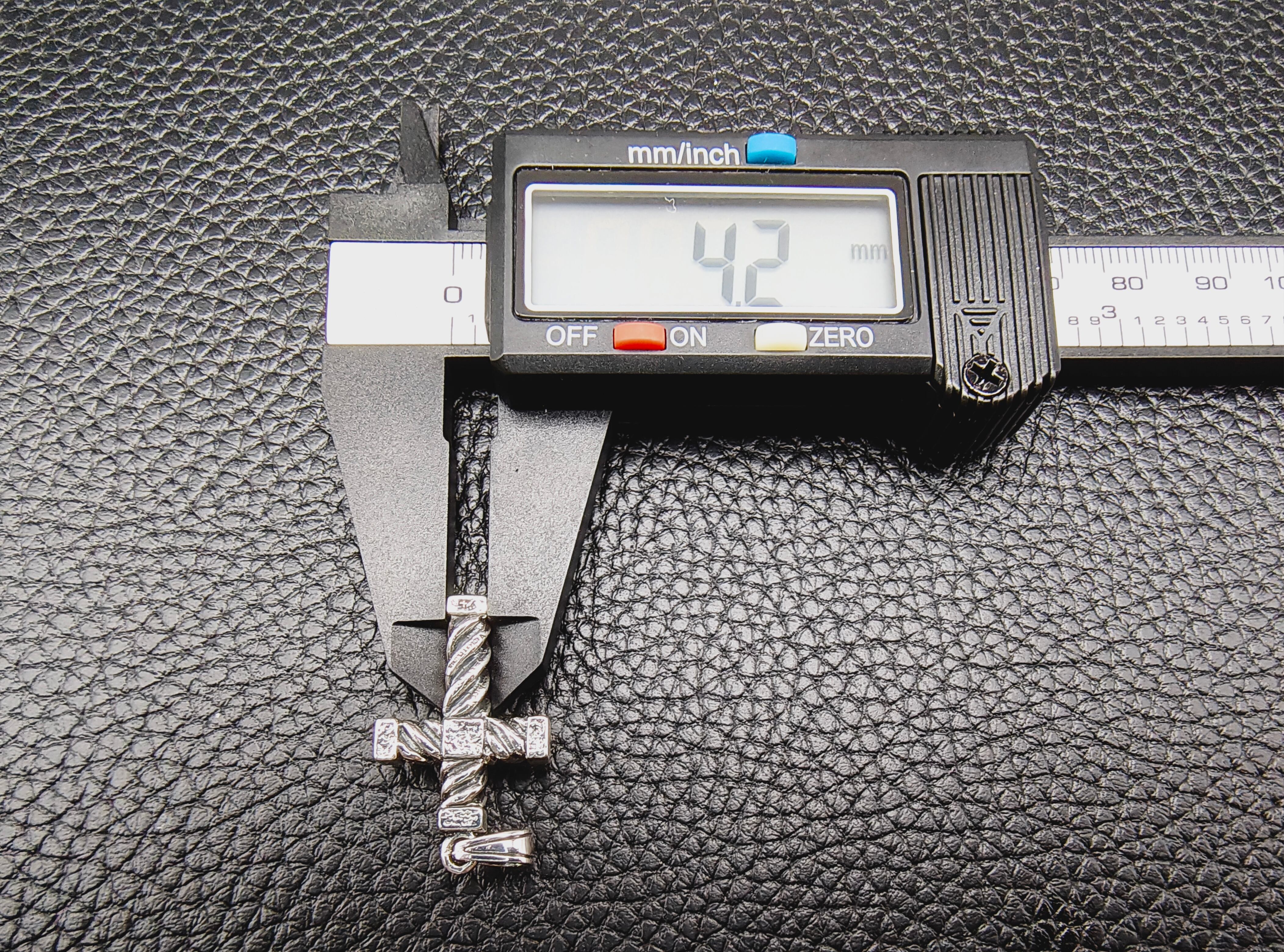縄目状の軸を交差させ、角ばった装飾を随所に配したクロスペンダント。
